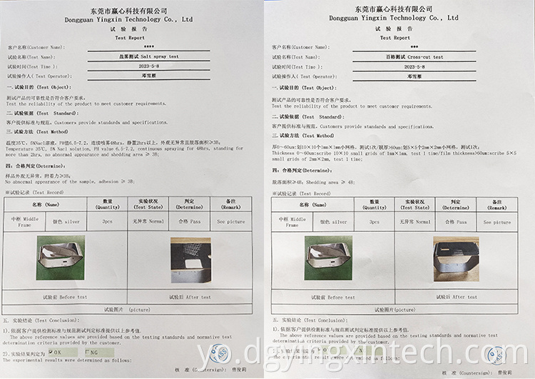 Testing equipment | CMM; Tool microscope; Projecting apparatus; Automatic height gauge; Manual height gauge; Dial gauge; Marble platform; Roughness measurement, Salt spray tester, RCA paper tape abrasion tester, Coating thickness tester, etc. | |